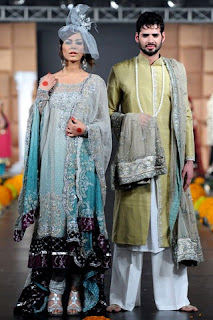 Every ones well and known that Maria Butt (MARIA B.) is most famous fashion designer of Pakistan. she always presents most of the greatest bridal collection. after the biggest success getting in Pakistan and all over Asia, she designed Paris traditional wedding wear dresses with beautiful trend of Muslims dress at PFDC L'Oreal Paris Bridal Week 2011. her theme of this collection is Indian ''Lucknow nawabs'' style dresses. the bridal lehenga and groom sherwanis by Maria B. (Maria Butt) are very traditional look and modern style.