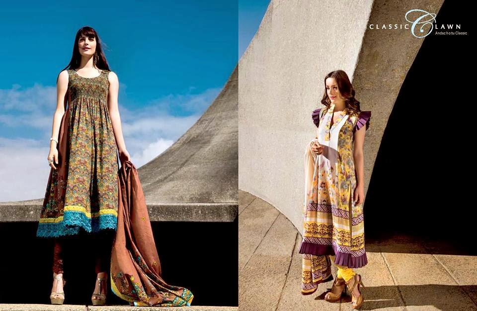 Five Star Textile Industries (Pvt) Ltd is Pakistan's famous and well known apparel brand. As you know that the cold winter season is dwindling. People in many cities are keep warm clothes/outfits in their wardrobes for next year winter season. Five Star has finally started to introduced it's summer collections for the year 2014. Recently Five Star Textile has launched Latest Classic Lawn Collection-14. Set of the floral printed hues of autumn leaves with you own burst of bright colors, style and couture. Make your presence felt with robust fabrics and the sheer allure of femininity. FIVE STAR is a label that does glamour in all its avatars — a theme which has become central to it's women's / girl's wear collection. This season FIVE STAR introduced a new line of Classic Lawn with fresh designs and prints. You will like the each dress of this collection due its color schemes and luxurious designs. Make your lifestyle luxurious with Five Star's exclusive designs, vigorous colors and refreshing patterns. Here you will seen limited designs but complete catalogue will launching soon. This collection is consists of 3 piece suits. Let's have a closer look at entire collection.